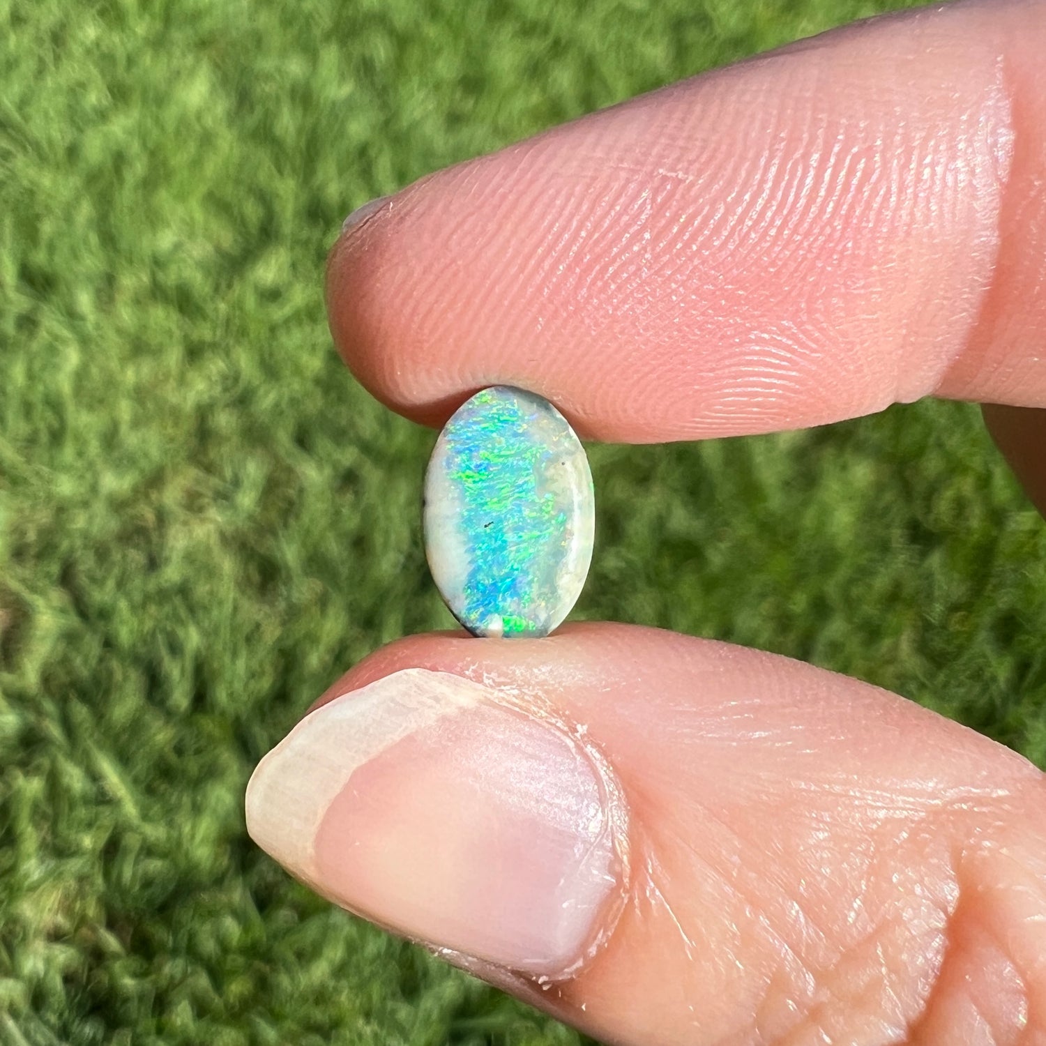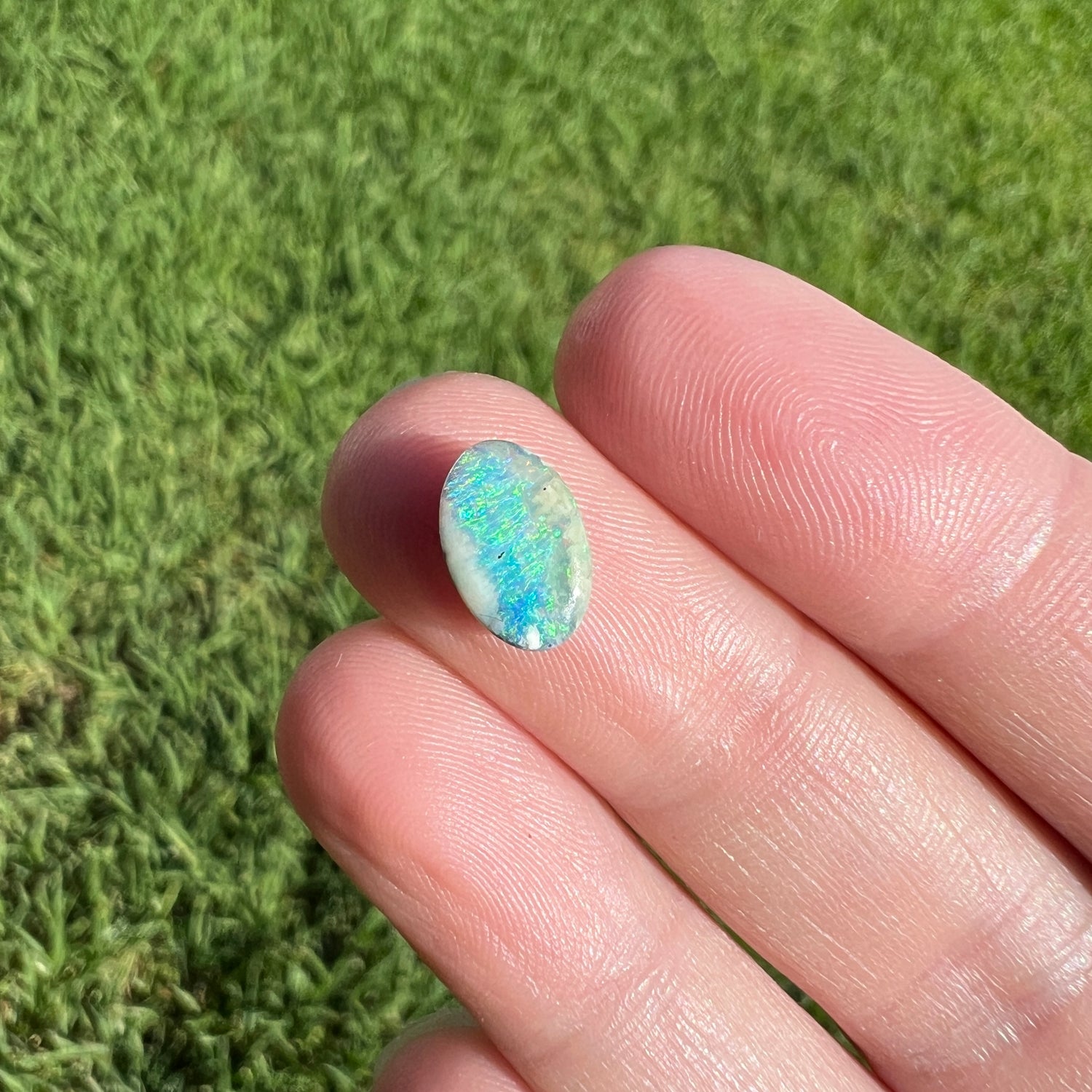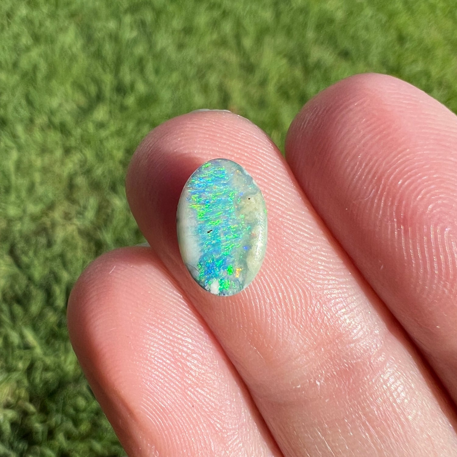 A very pretty sea-green oval boulder opal.