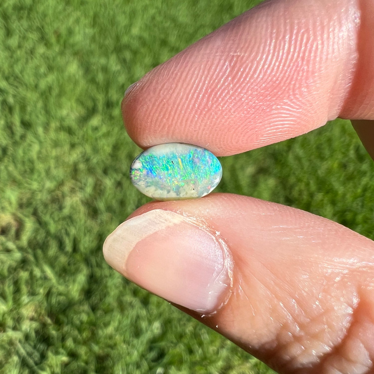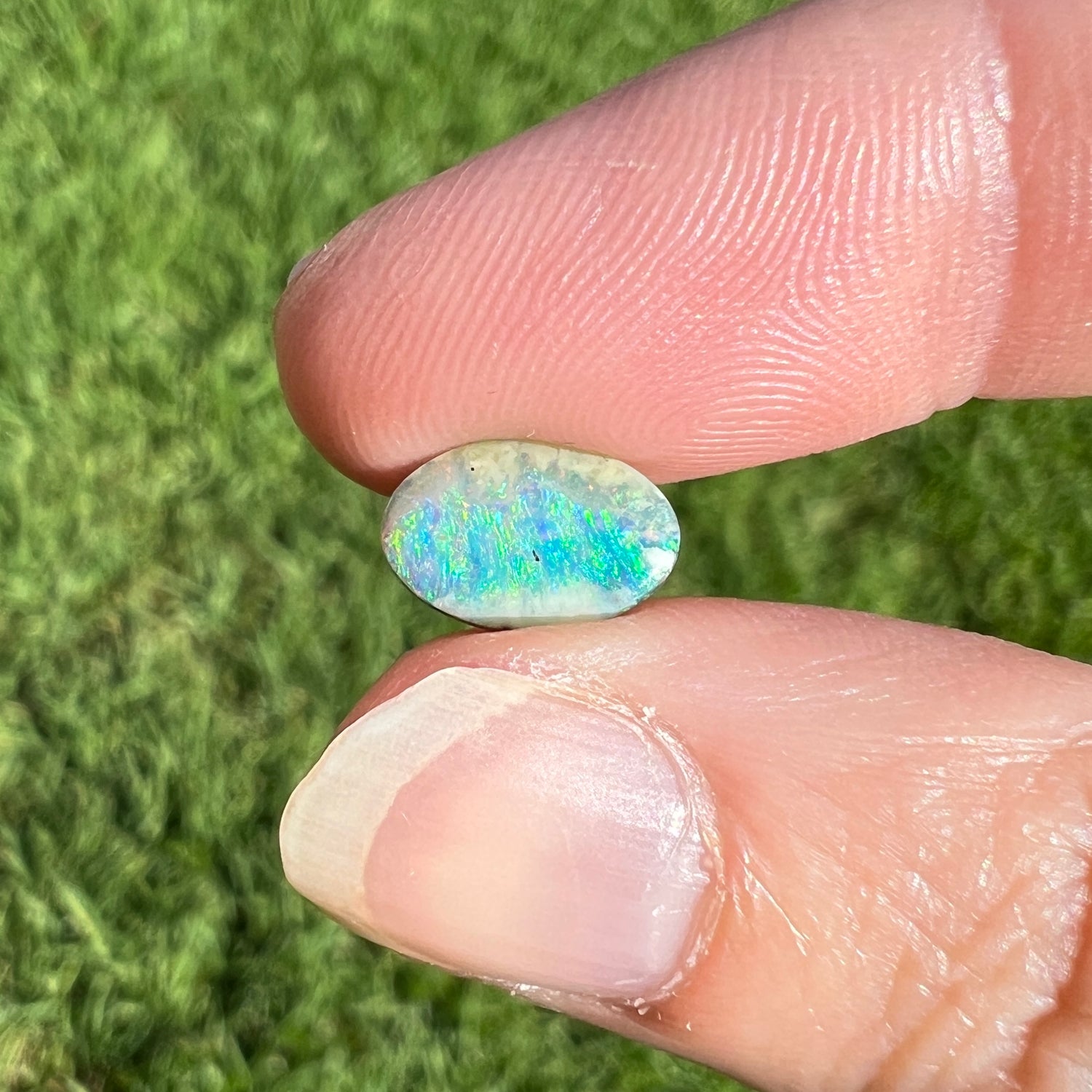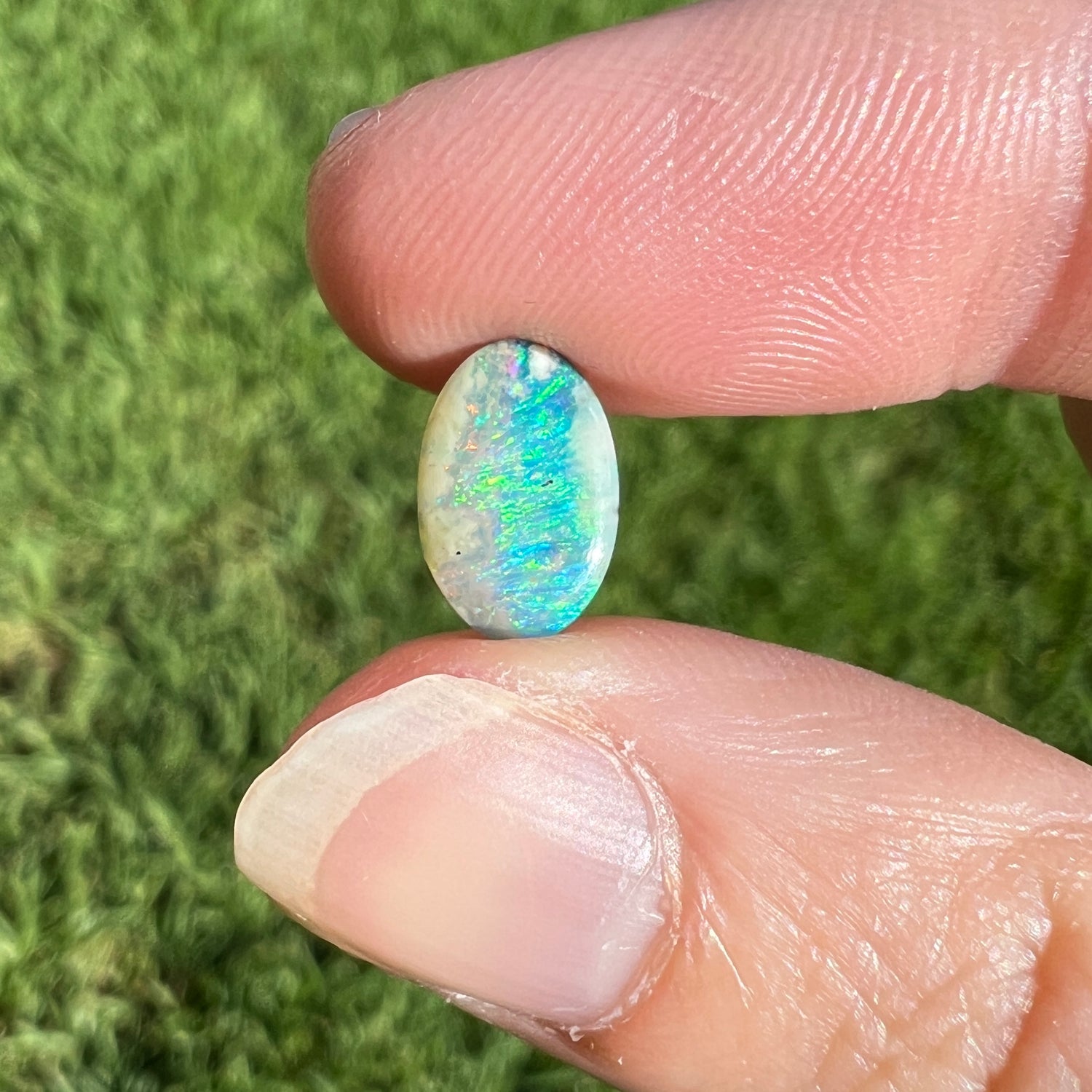 A very pretty sea-green oval boulder opal.