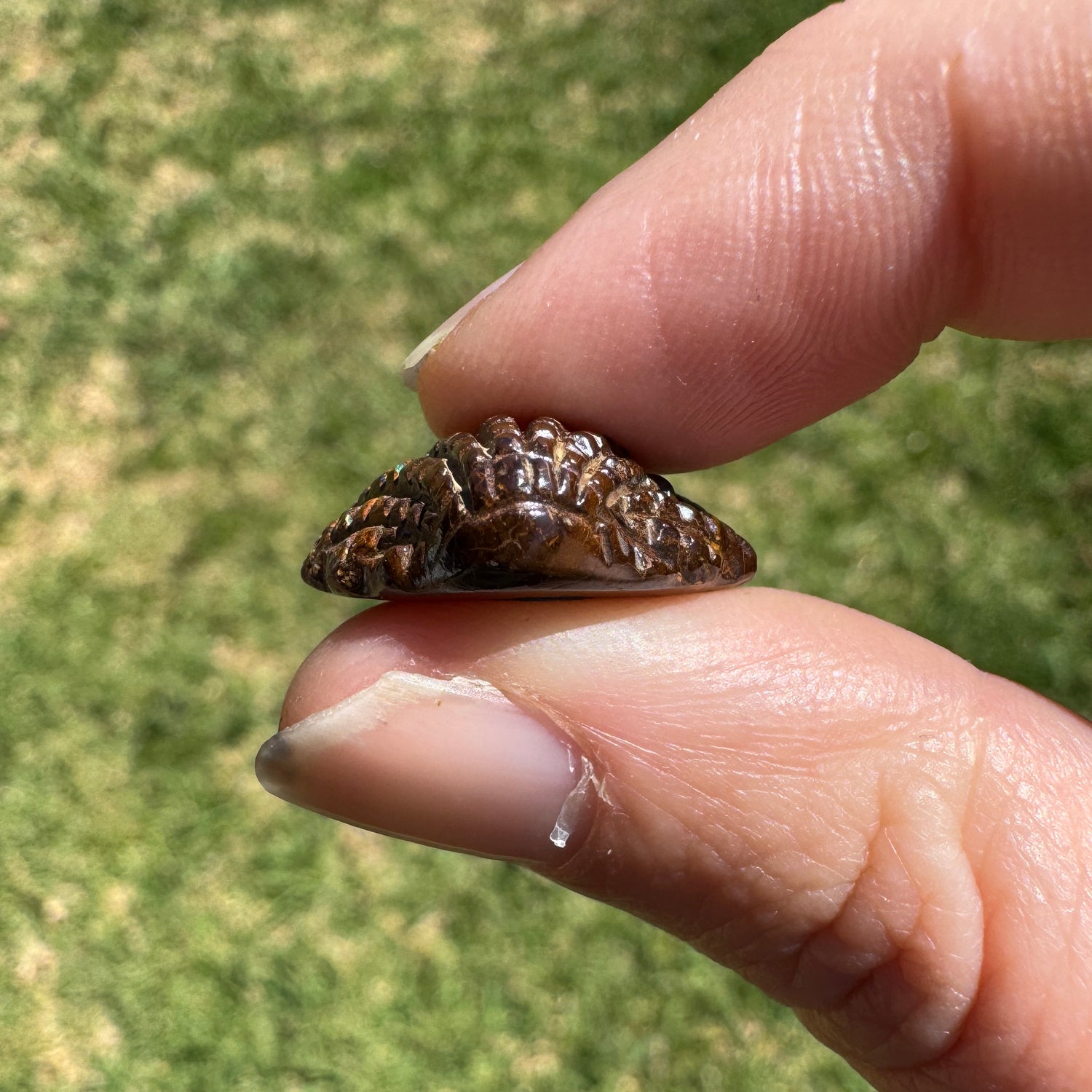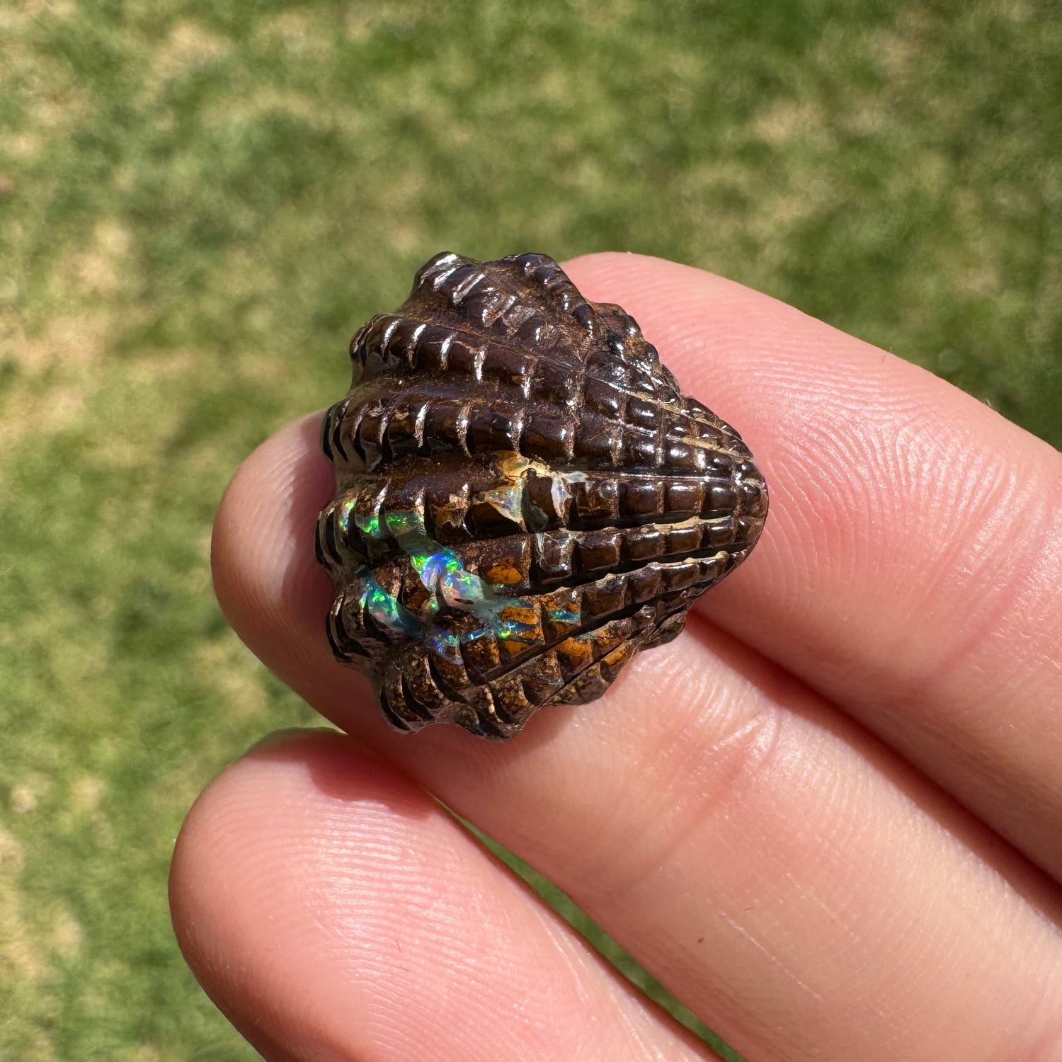A lovely fan shell boulder opal carving. Please note this is very limited stock, so don't miss out.