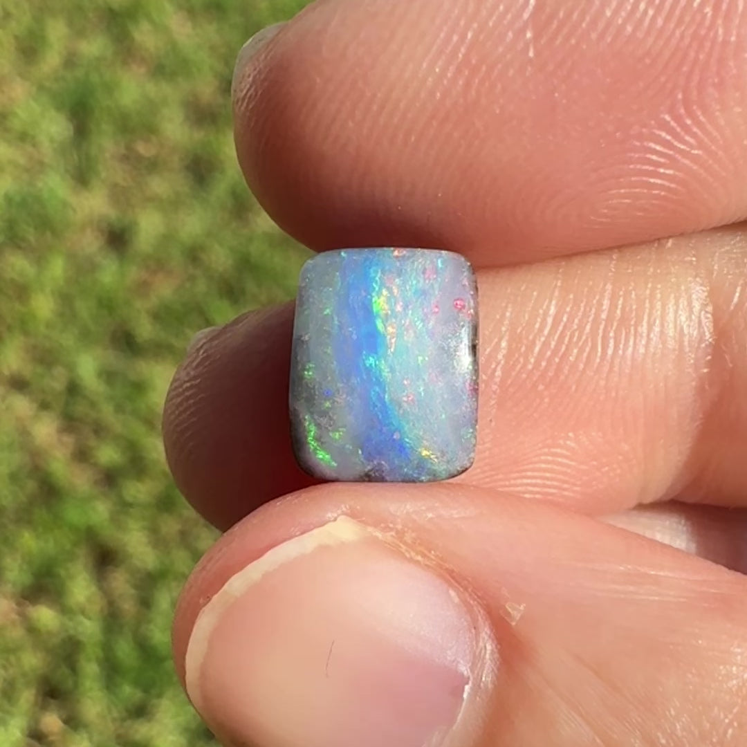 A gorgeous small boulder opal with a rare pink and blue colour combination.