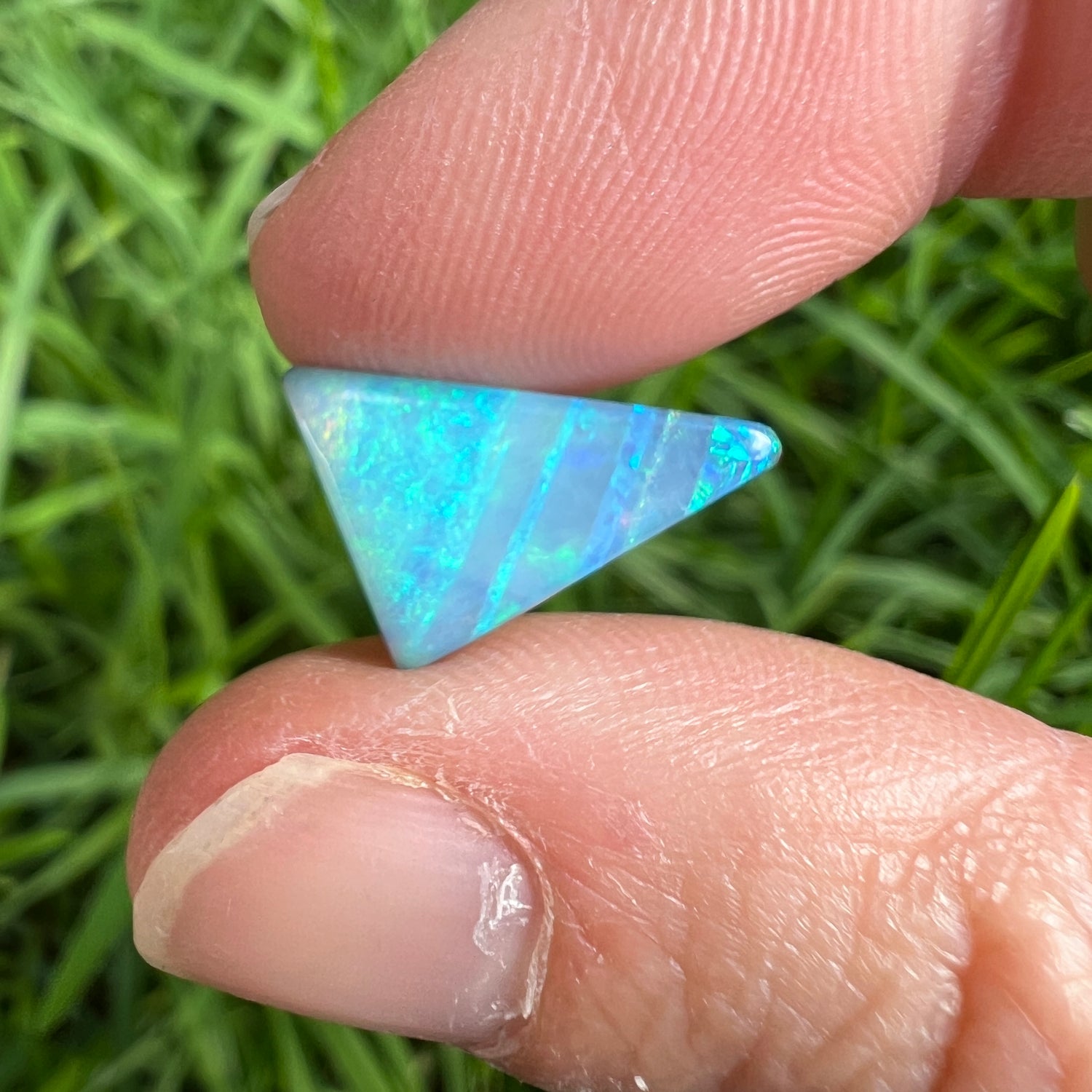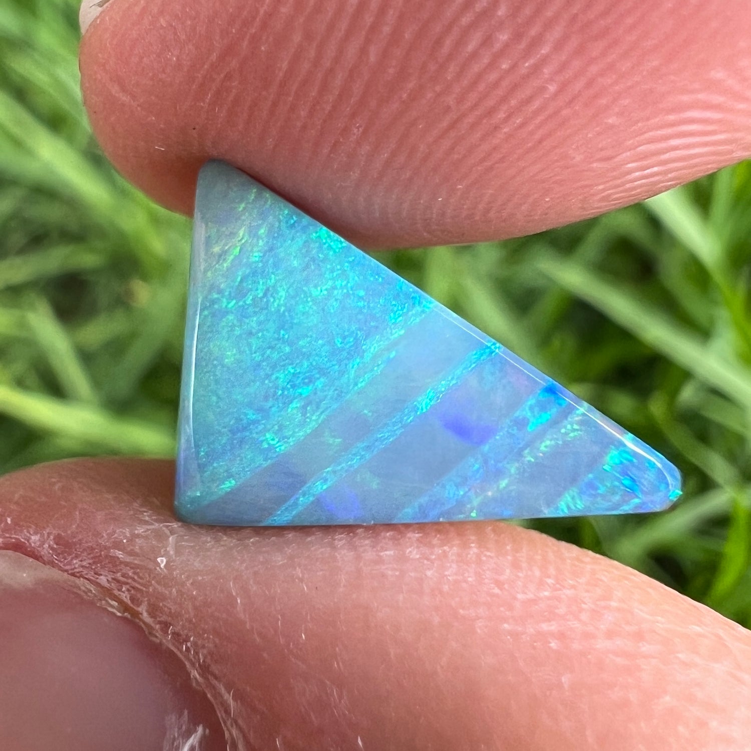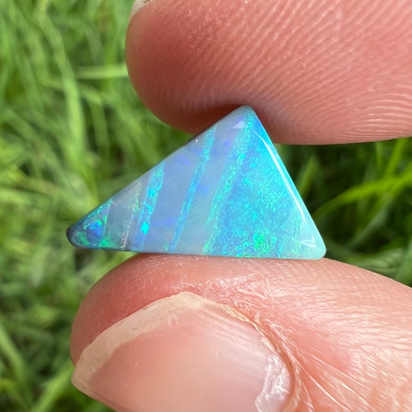 A very pretty ocean coloured boulder opal with a striped pattern.