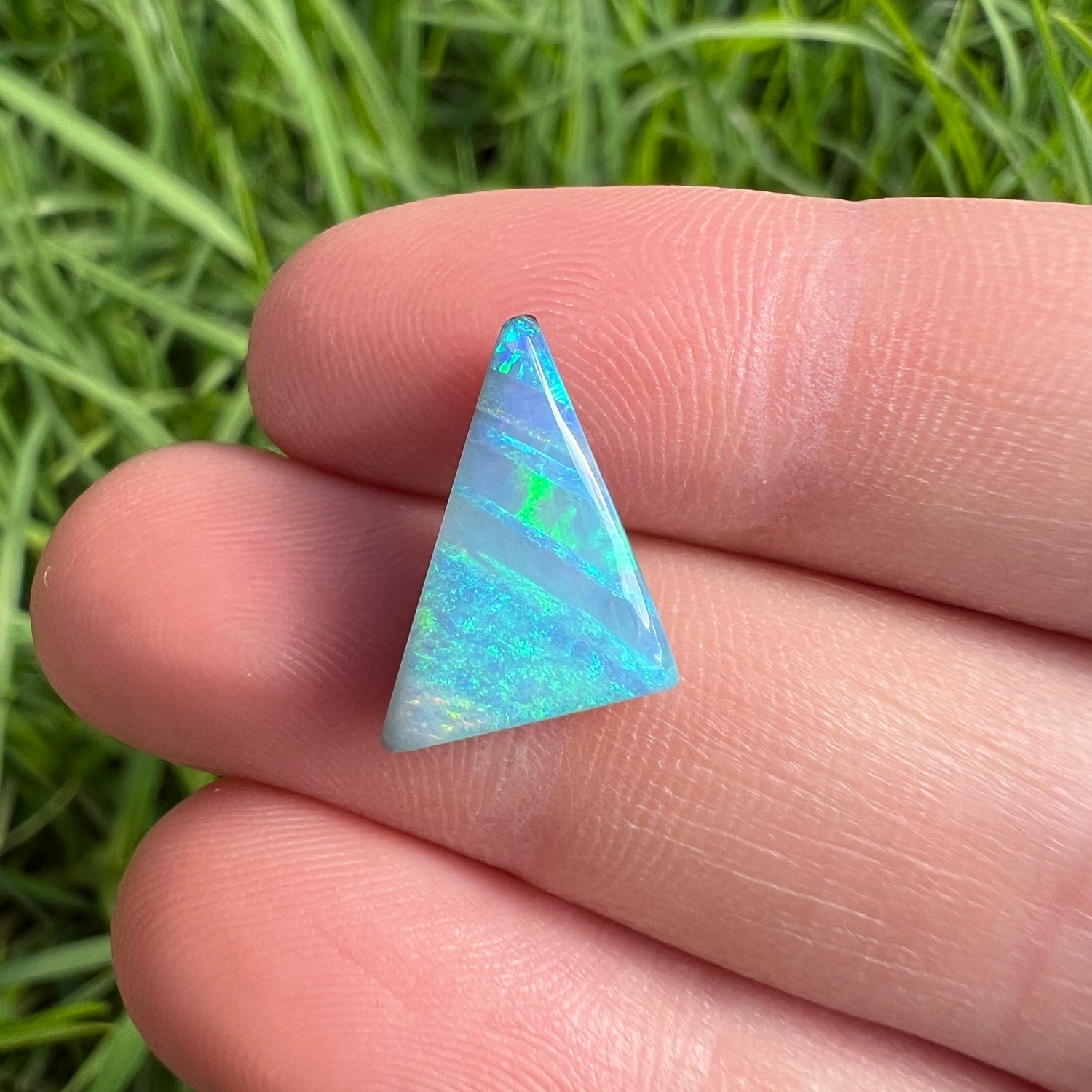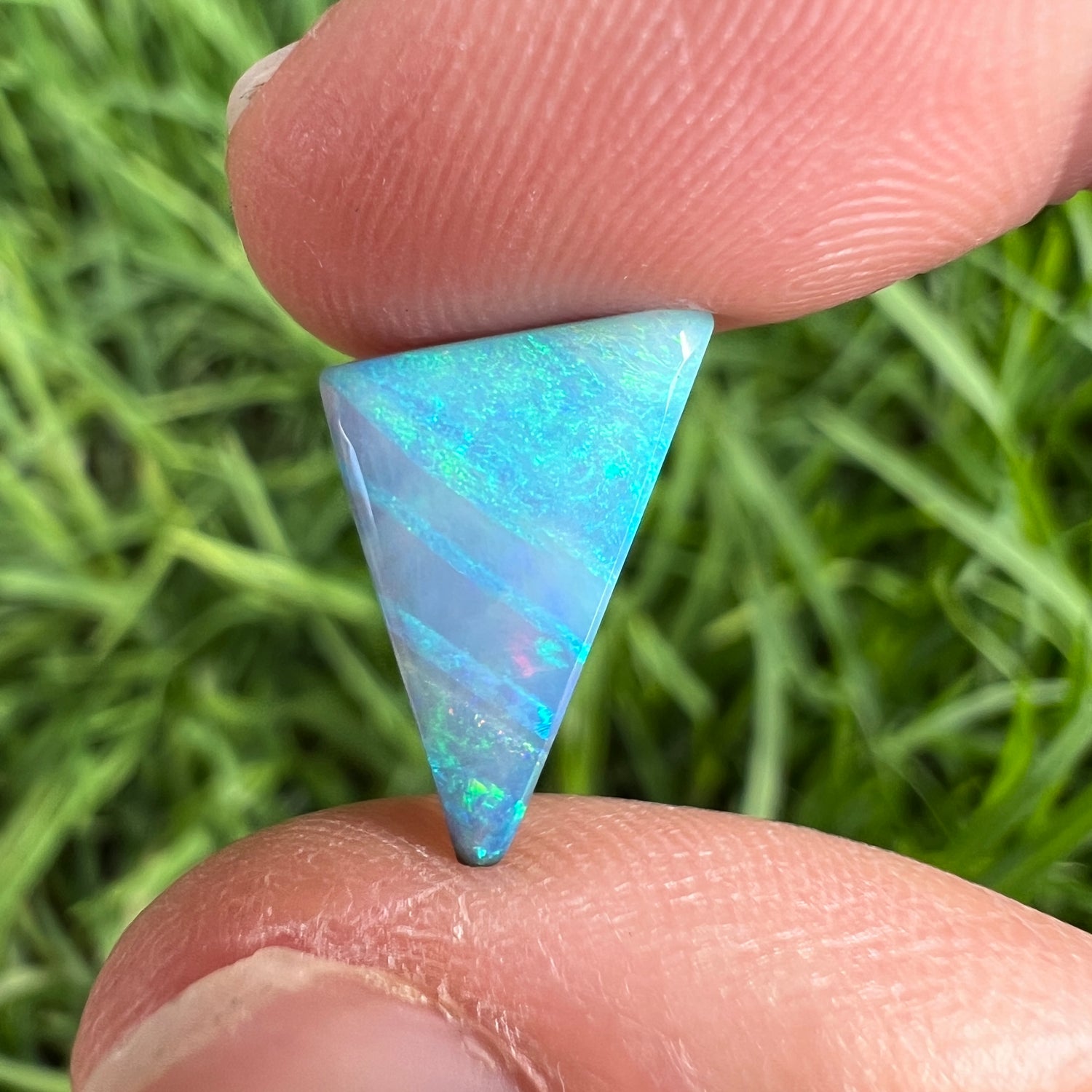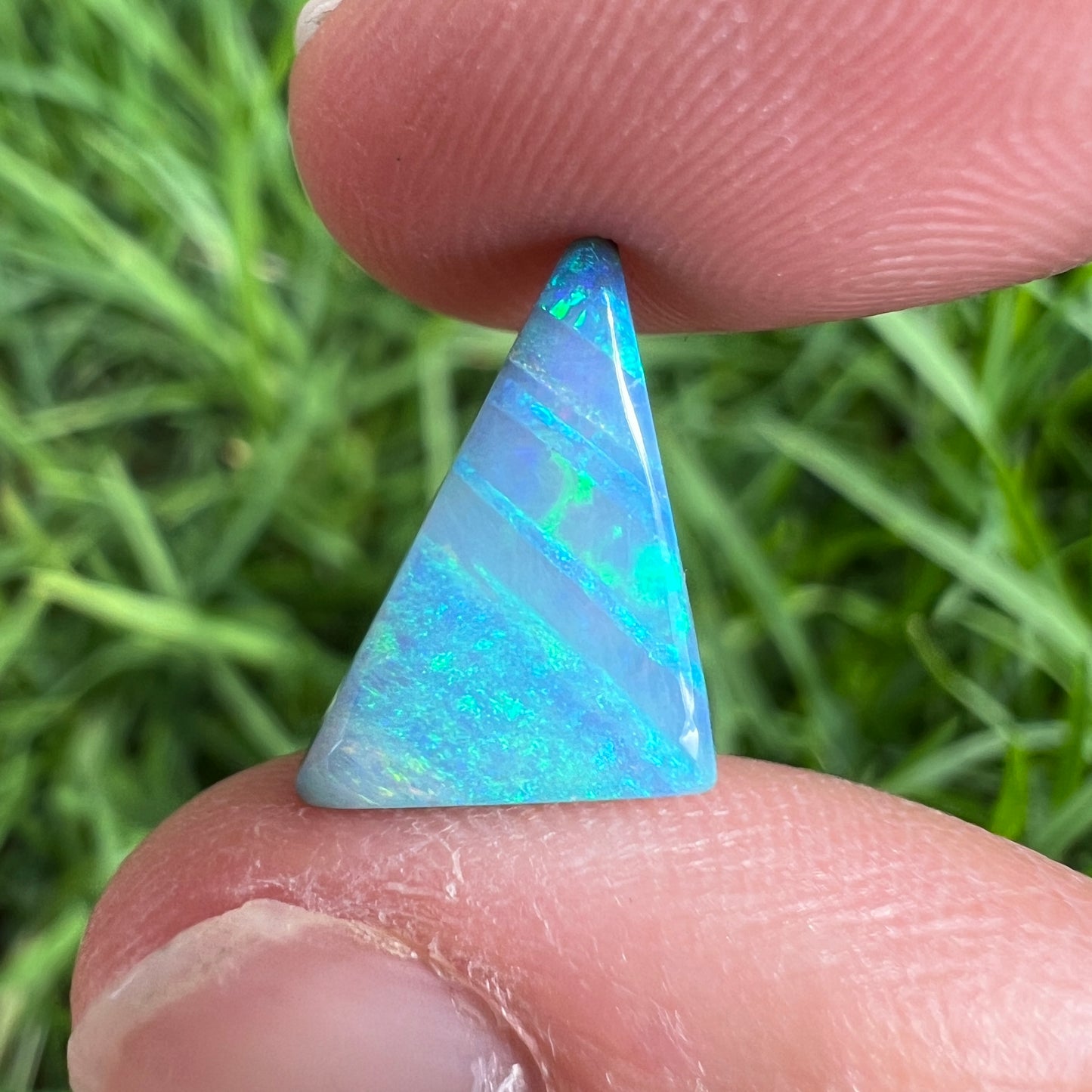 A very pretty ocean coloured boulder opal with a striped pattern.