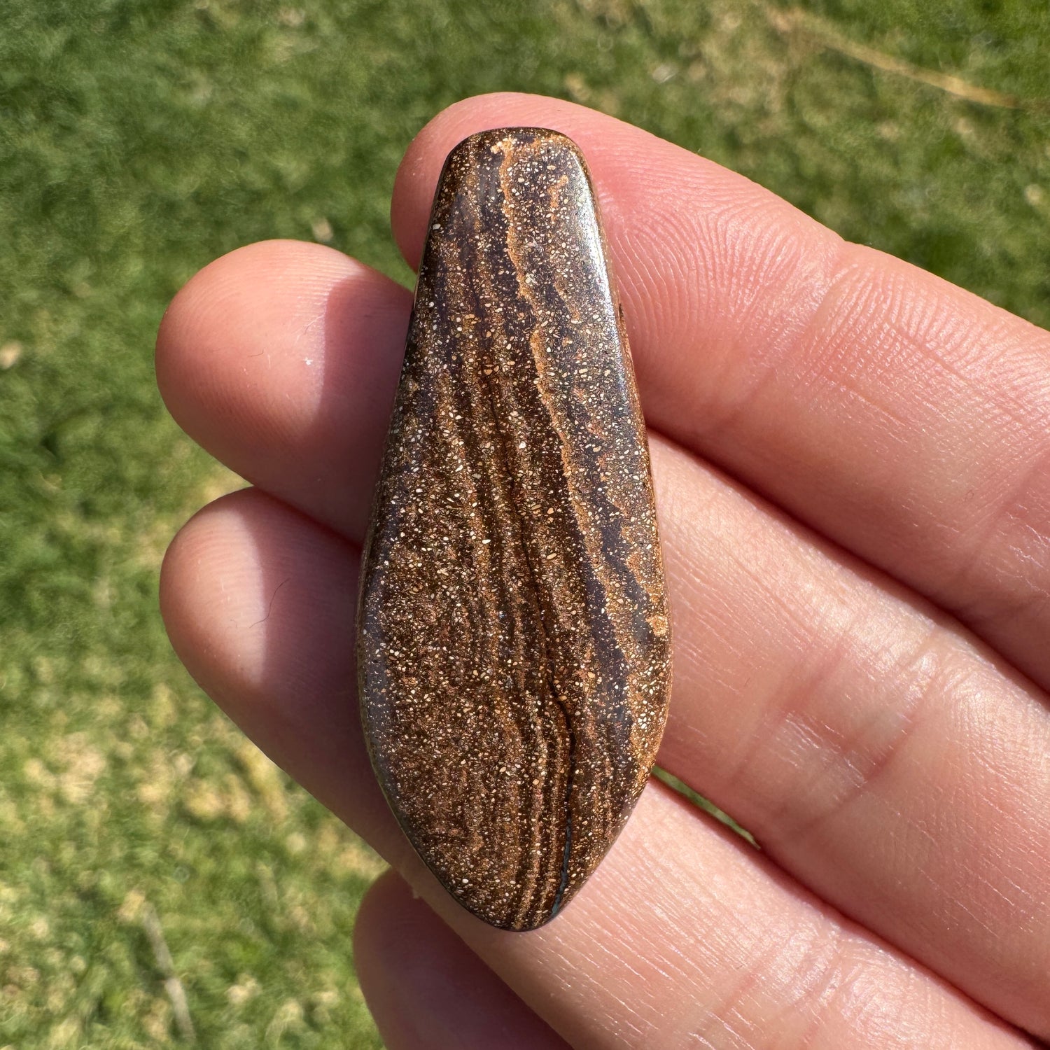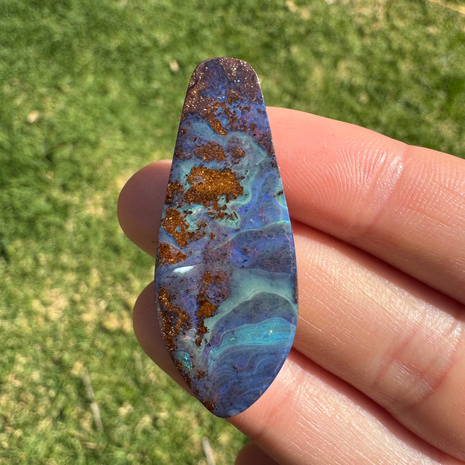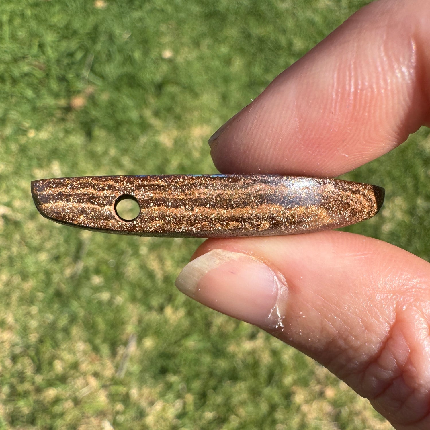 A beautiful large boulder opal that has has a ~2.0 mm drilled hole through its side.