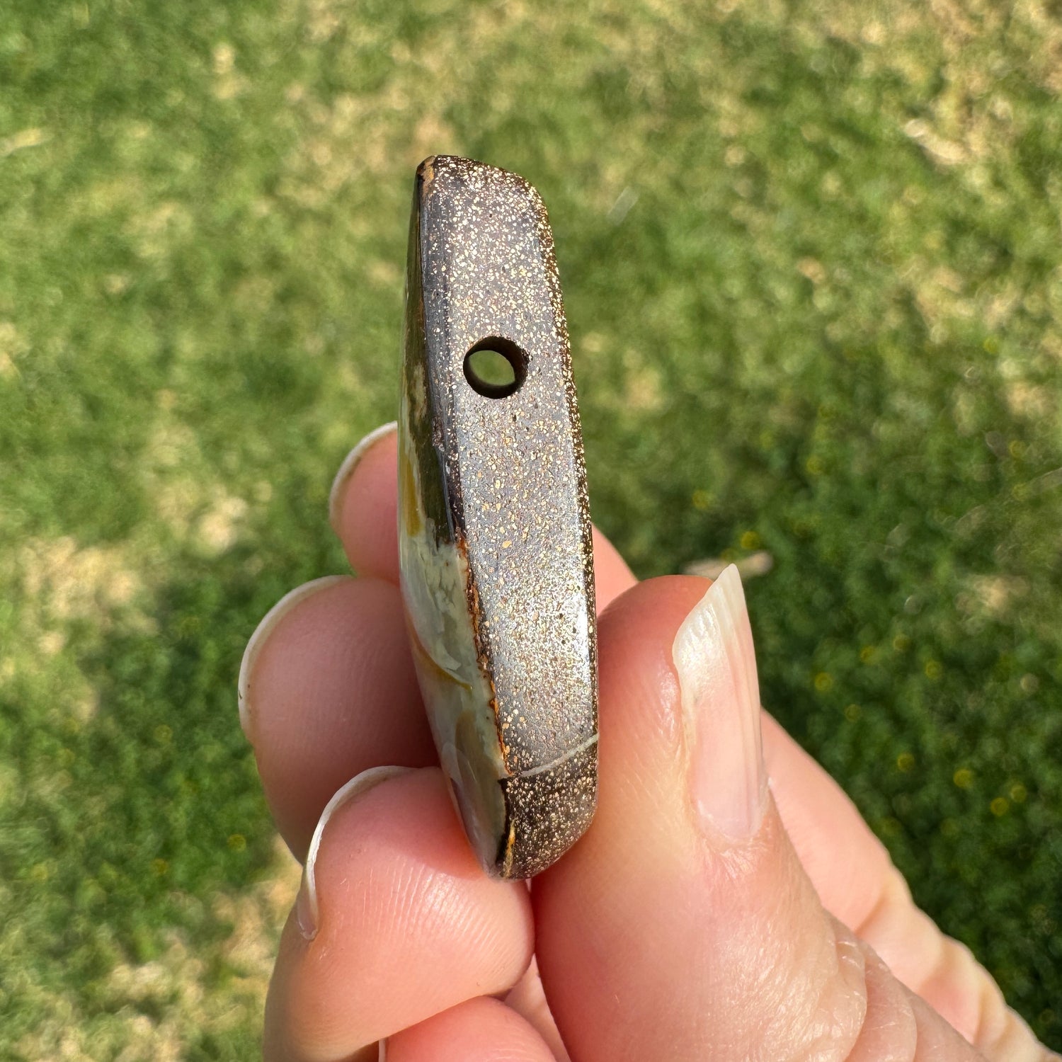 A beautiful large boulder opal that has has a ~2.0 mm drilled hole through its side.