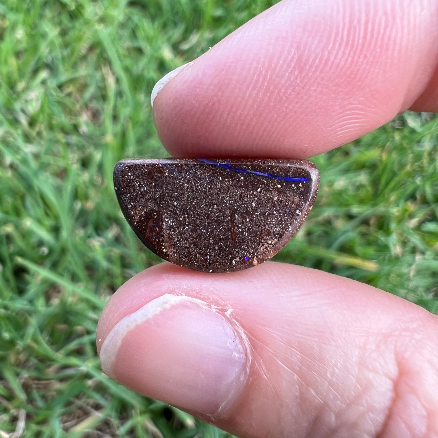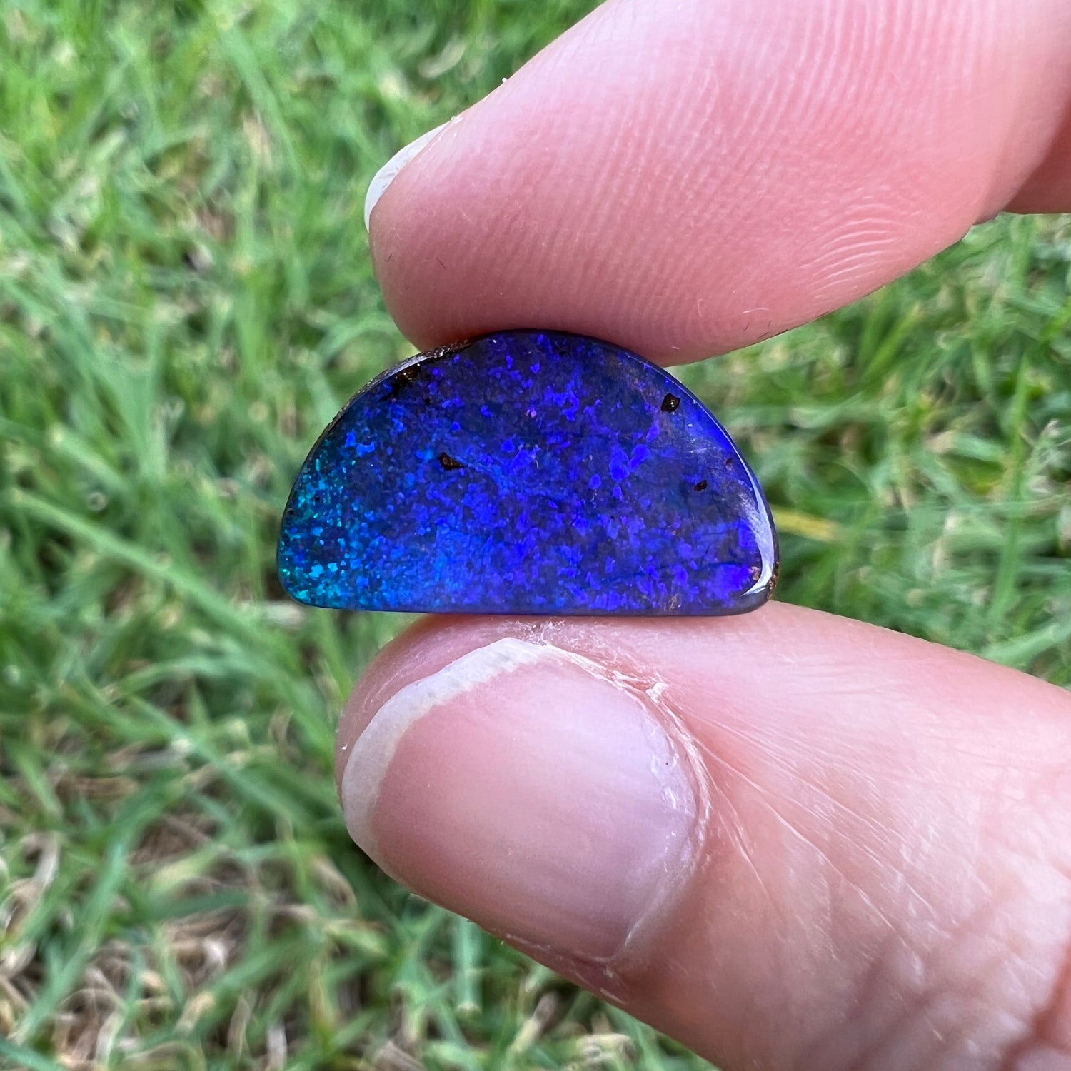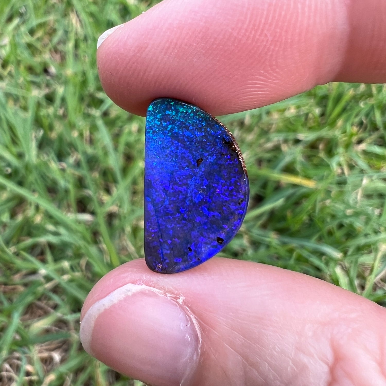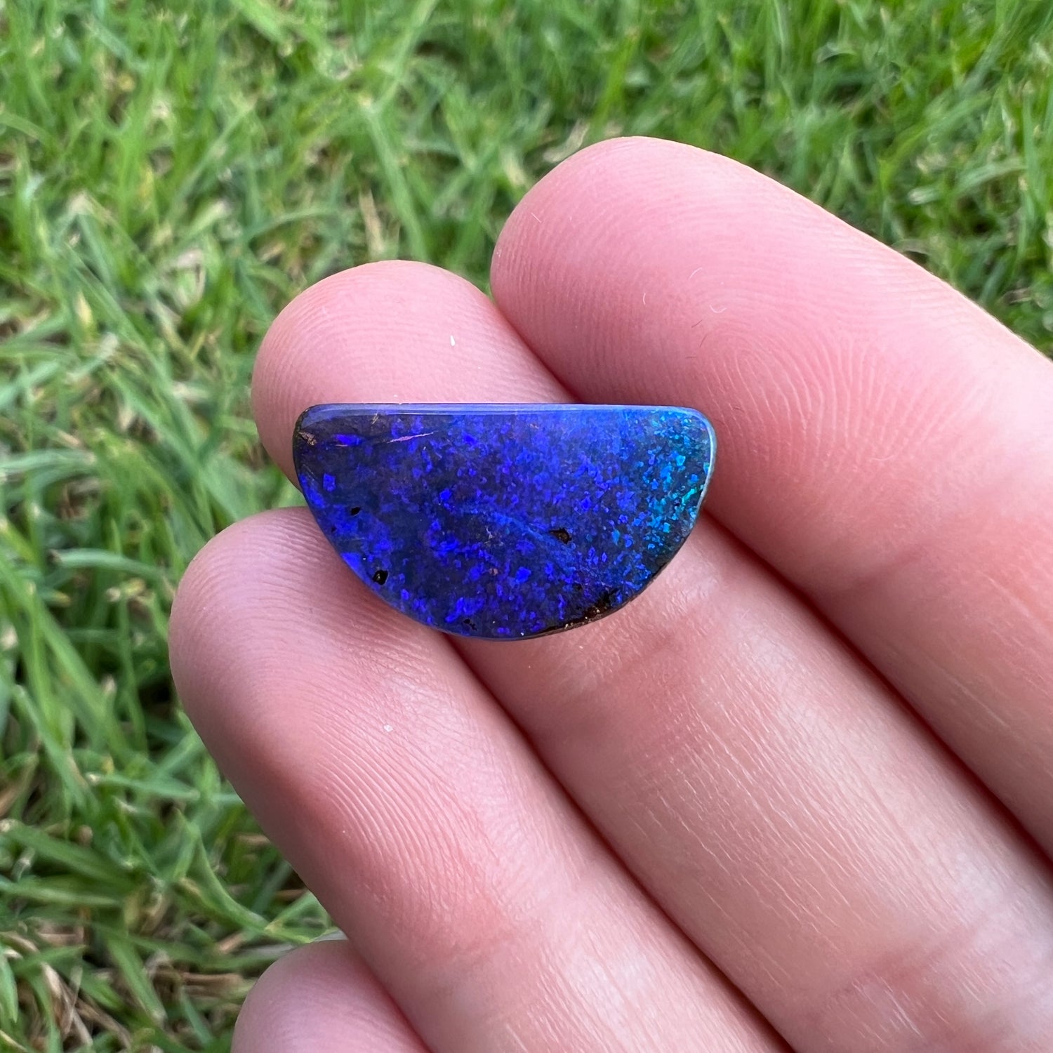 A beautiful purple boulder opal, with a green edge on one side.