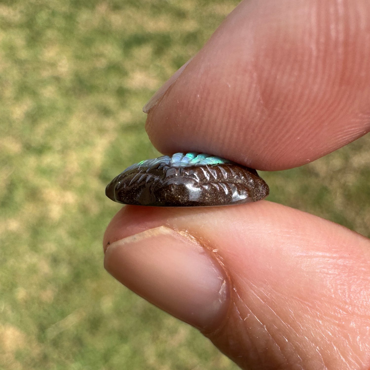 A lovely fan shell boulder opal carving. Please note this is very limited stock, so don't miss out.