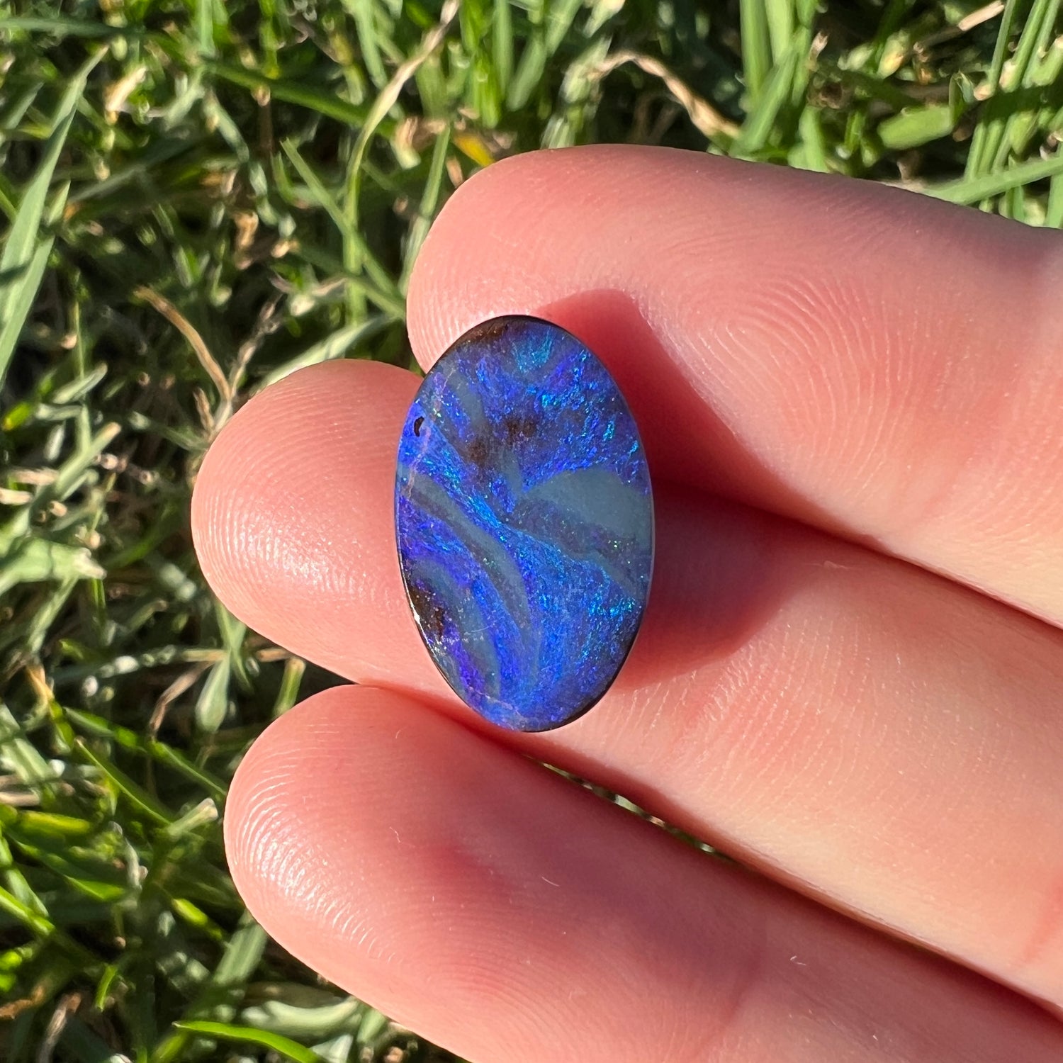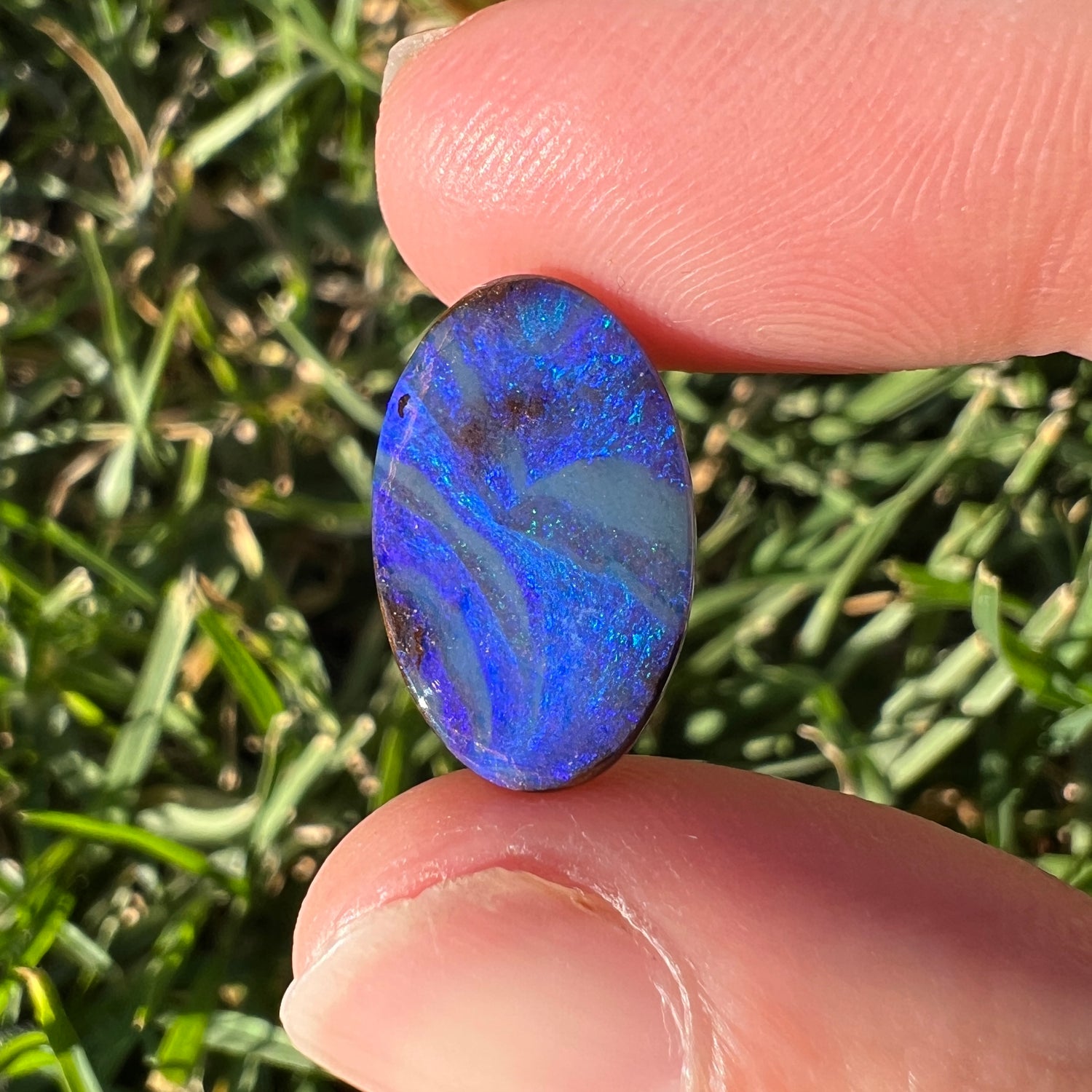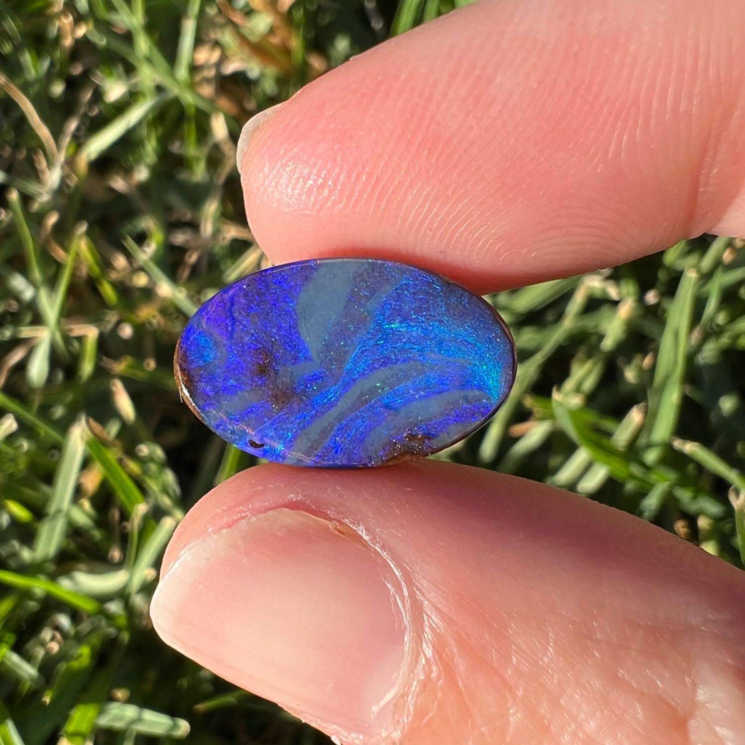 A stunning blue boulder opal in a classic oval shape. We don't get these very often, so don't miss out.