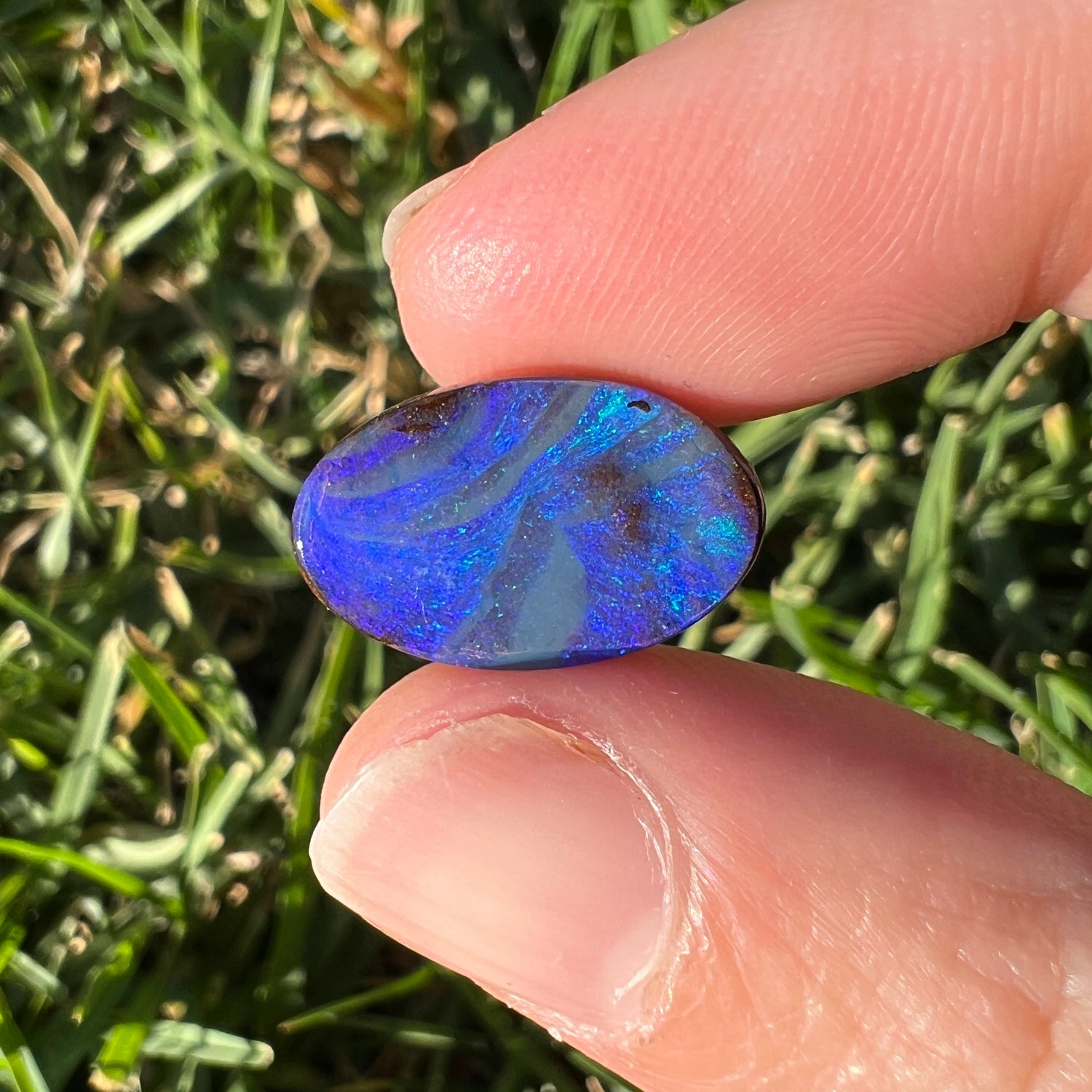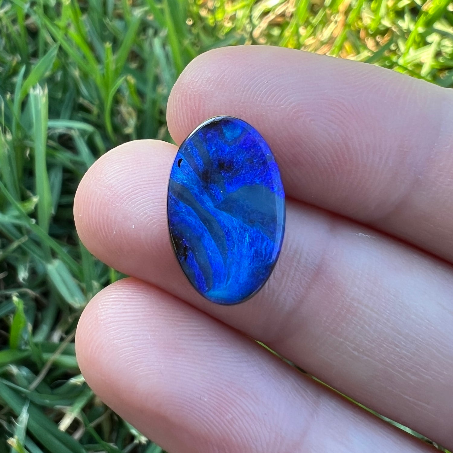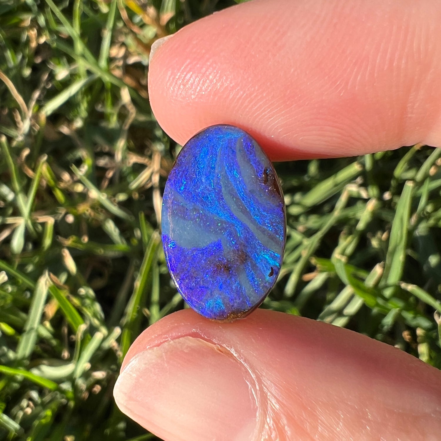 A stunning blue boulder opal in a classic oval shape. We don't get these very often, so don't miss out.