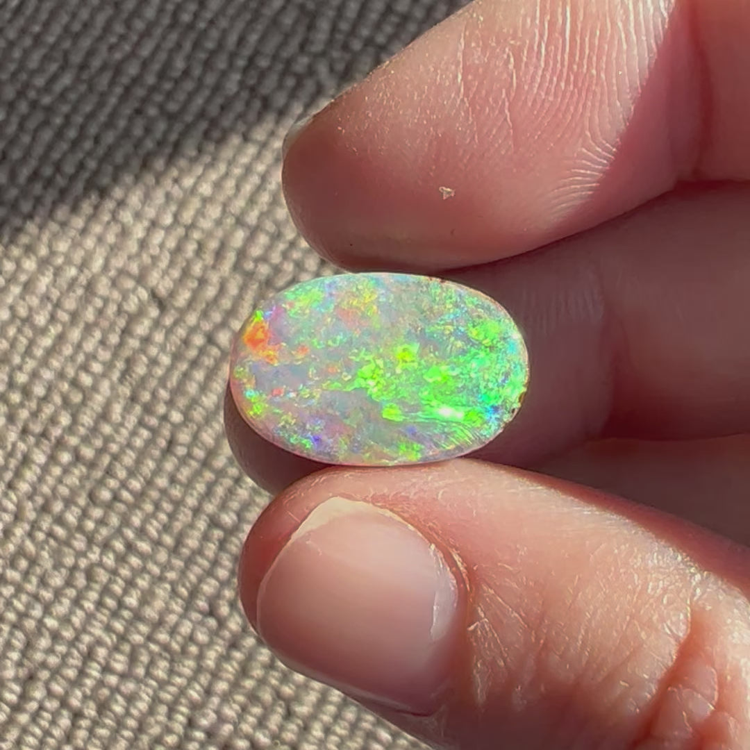 This 6.45 carat boulder opal has a rare combination of colors including orange, yellow, lime green, and turquoise. Its vibrant hue and exceptional clarity make it a unique and beautiful gemstone, sure to add magic to any jewelry piece.